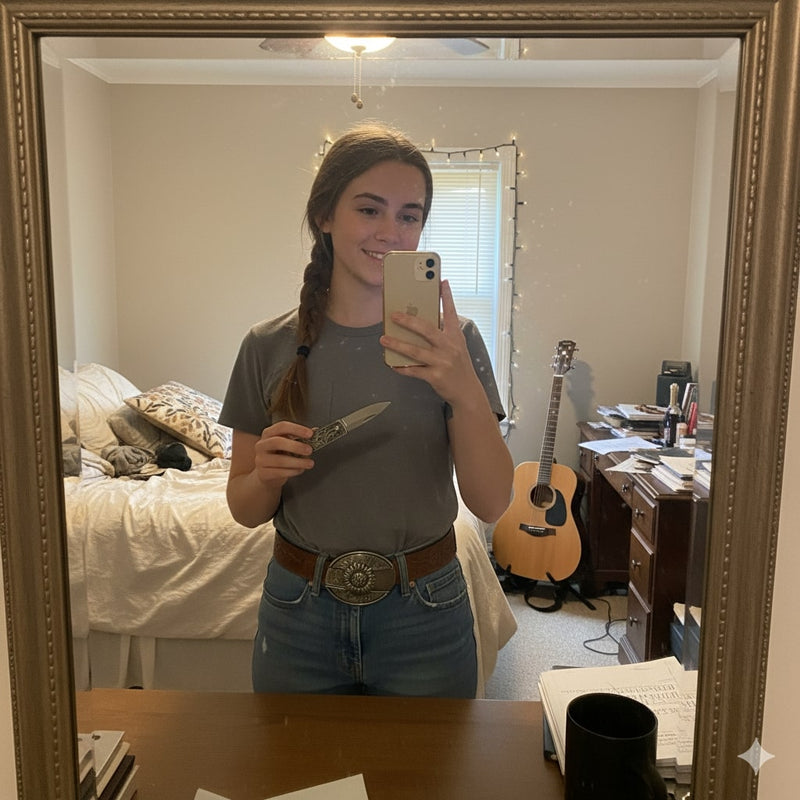 Buckle holds small yet sharp and high quality knife, built to stay sharp and dependable when you need it.